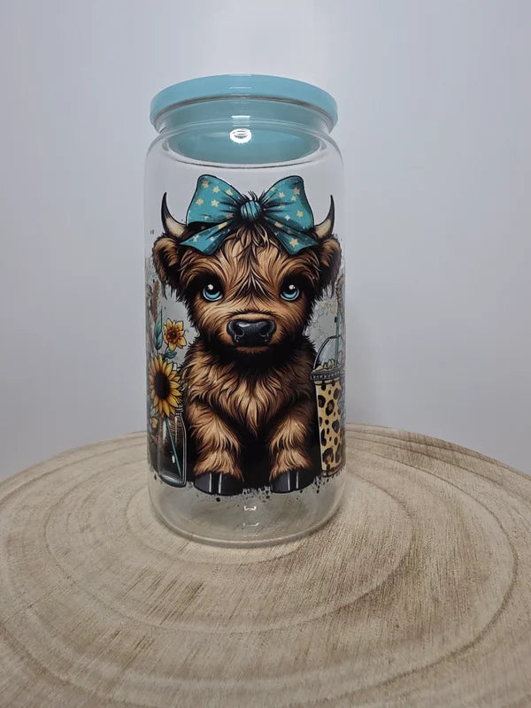 Verre en plastique 16oz avec paille au motif de vache et cactus